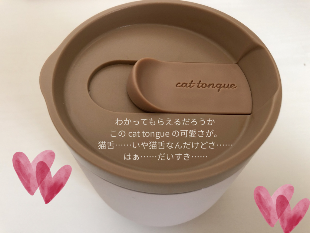 ちなみに、英語で猫舌って「sensitive tongue」とか言うらしいんですけど(調べた)、このマグのふたには「cat tongue」って書いてあるんですよ……!
